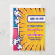 Announce your engagement with a unique and personalised comic book-style save-the-date card. This vibrant and visually striking invitation, customised with your names and wedding date, is the perfect way to introduce your superhero love story to your guests. Designed by freepik.