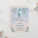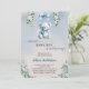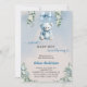 Celebrate the upcoming arrival of a sweet baby boy with this adorable blue teddy bear baby shower invitation. Featuring a soft watercolor design with a hanging teddy bear, delicate florals, and elegant script fonts, this invitation is perfect for a memorable baby shower event.