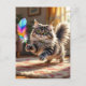 A sweet postcard to say hi and keep in touch with a friend or family member when you are away featuring a sweet fluffy kitten having fun chasing a feather. Total cuteness.