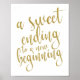 An elegant cutting edge wedding sign, features the text "a sweet ending to a new beginning" in a extroverted script font, the glitter texture adds a festive and glamourous touch. The background colour can personalised according to your needs and preferences, please contact me if you have any special request.