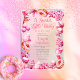 We know you can't wait to see your "Sweet Little Baby" and this candy-themed Baby Shower design celebrates you and your little one in all pink glory! A delicious bakery treat and candy pink frame surrounds your shower details in an oh so yummy way. The back features a swirl of cotton candy to top off this sweeter than sweet design.