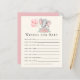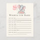 Baby card with Baby shower wishes with a beautiful elephant with pink balloons in watercolor. The perfect activity to play during the baby shower will undoubtedly be a great pleasure.