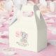 Diseño lindo caja de regalo de tematica con un hermoso elefante con globos rosas en acuarela. Se puede persinalizar el nombre de tu bebe. Dale un toque lindo a tu baby shower de niña con este lindo diseño de elefante.