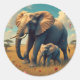 A Sweet Sentimental Mama and Baby Elephant Classic Round Sticker