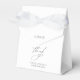 These elegant favour boxes are thoughtfully designed to complement any wedding theme. Their clean lines and minimalist style add a touch of sophistication to your special day. Fill them with sweet treats or small tokens of appreciation for your beloved guests. Express your gratitude with this chic and unassuming gesture. Designed to coordinate with for the «Chloe» Wedding Invitation Collection. View the collection link on this page to see all of the matching items in this beautiful design.