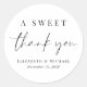 A chic sticker for your wedding party favours featuring "A Sweet Thank You" in a modern script and elegant typography, your names and wedding date.