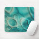 A close-up image displays a soft, plush fabric with a swirling pattern in teal and light beige. The image highlights the texture and abstract design of the material.