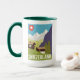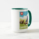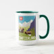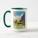 This design features a retro travel poster style scene of the Swiss Alps complete with chalets and snowy mountain peaks.