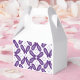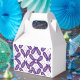 A symmetrical pattern featuring white and purple m favour box