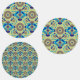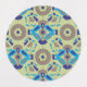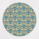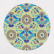 A mesmerising interplay of blue and orange motifs, complemented by subtle accents of yellow and brown, defines this asymmetrical textile design. The careful arrangement of colours creates a sense of balance and harmony, making it a captivating addition to any room.