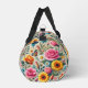 I actually had been searching other sites for a duffle gym bag and I couldn't find any. This one is just what I was looking for with all the features. The inside zip pocket, the outside mesh pocket and LOTS of room inside. Love the printing. Really like how the floral print turned out.