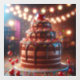 A decadent three-tiered chocolate cake takes centre stage, its rich layers adorned with cascading chocolate ganache and a vibrant scattering of colourful sprinkles. Each tier is crowned with plump, juicy cherries, and a single, perfect cherry reigns supreme at the very top. The warm, inviting glow of fairy lights in the background creates a festive atmosphere, hinting at a joyous celebration. The scene is a feast for the eyes, promising a delightful explosion of flavour with every bite.