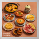 This image showcases a vibrant array of Spanish tapas, each dish a burst of flavour and colour. From the iconic paella to the savory churros, this image captures the essence of Spanish cuisine, a celebration of fresh ingredients and bold flavours