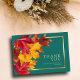 Express your heartfelt gratitude with our exquisite wedding thank you cards. This captivating design features a vibrant teal backdrop adorned with a shimmering gold frame and surrounded by autumn leaves. The heartfelt message "Thank You" is displayed in bold, elegant typography, complemented by the couple's names.