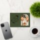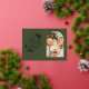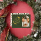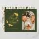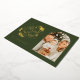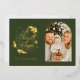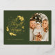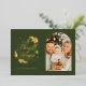 A modern dark green and gold foil religious holiday card. On the reverse is a pattern of green and navy holly and pine leaves. Personalise with your favourite photo and sign off.