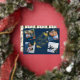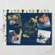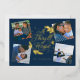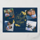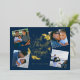 A modern religious real foil Holiday Card with the phrase "A Thrill of Hope" in foil the centre on a navy background, surrounded by 4 of your favourite photos. On the reverse is a pattern of green and navy holly and pine leaves on a cream background.
