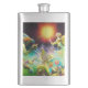 The product is a good size and came exactly as it was pictured. The lid is not attached to the flask, which could be dangerous on drunken nights... The print came out surprisingly well and looks very sharp. Would definitely recommend.