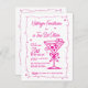 Whimsical and feminine, this espresso martini theme birthday invitation features a large pink doodle martini and frame. All of the text is editable.