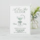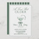 Celebrate in style with a modern, stylish twist on a classic cocktail lounge vibe—this birthday invitation features a sleek martini glass adorned with a playful coquette bow, set against elegant vintage sage green typography that feels just a tini bit older, like the charm of a well-loved speakeasy. The design evokes the sophistication of a dirty martini, balancing timeless glamour with contemporary flair. On the back, crisp sage green stripes add a chic retro finish, making this invitation the perfect blend of polished elegance and playful indulgence for an unforgettable adult birthday celebration.