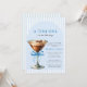 A Tini One Is on the Way Boy Couples Baby Shower - Celebrate the upcoming arrival of a little bundle of joy with our A Tini One Is on the Way couples baby shower invitation. This charming design features an espresso martini, elegantly adorned with a delicate blue bow, setting the tone for a modern yet whimsical celebration. Invitation also features a trendy blue coastal stripe background. Available with or without background. The modern calligraphy and stylish typography give the invitation a sophisticated and contemporary touch, while the soft blue hues create a perfect, welcoming vibe for the baby boy who's about to make his grand entrance. It’s the perfect blend of warmth, style, and excitement to mark this special occasion!