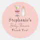 A Tini One Is On The Way Pink Martini Baby Shower Classic Round Sticker - Martini themed stickers for a girl baby shower. Featuring watercolor illustrations of a dirty martini with two olives and a coquette pink bow and a baby bottle. Script handwritten text and sleek block text. Use it for baby shower favours or thank you cards. All text is editable.