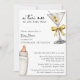 A Tini One Is On The Way Yellow Martini Baby Shower Invitation with arch photo - A simple watercolor baby shower invitation for a gender neutral baby shower. Featuring script calligraphy and sleek block font. A watercolor illustration of a dirty martini with two olives and a coquette yellow bow adorns the upper right corner while a watercolor illustration of a baby bottle adorns the bottom right corner. Edit this baby shower invitation template with your own event details. All text is editable. Personalise this baby shower invite even further by adding a photo of the mama to be on the back of the invitation. Also available as an instant digital download, an eco-friendly way to send invites via text, email or social media.