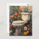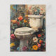 A toilet surrounded by flowers as nature reclaimed an abandoned bathroom with only the tiled wall and toilet remaining as plants and flowers grow all around AI generated art