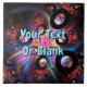 A multi-coloured fractal image with many negative-space toroids on a starry background. Customise by adding your own text.