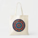 A tote bag with a traditional design, in a bold, colourful mandala pattern in large size on the front side and the same design in small size on back side.