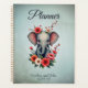 A touch of summer: The baby elephant in a sea of flowers. This enchanting design features a loving illustration of a small baby elephant, painted in delicate shades of grey. Its pink inner ears add a playful and charming touch. Its large, expressive eyes radiate curiosity and friendliness, while its sweet facial expression conveys pure warmth. The elephant sits gently enthroned among a variety of colourful flowers in vibrant shades of red, orange, pink, and white.