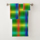 A towel set and washcloth display vibrant rainbow