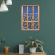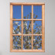Catch a breath of spring air and admire the blossom and new leaves on a tree. This faux window view has a scene taken in springtime, on a sunny day with a blue sky. The cherry blossom and fresh leaves hold a promise of warmer days. The wooden frame has 9 panes and is a warm shade of pine. Perfect for creating a view on a windowless wall.