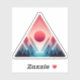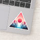 A Triangle Shaped Sticker with a Mountain Scene, symmetrical sticker design, flat surreal design, Design created in high-resolution quality.
