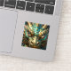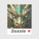 A sticker with an illustration of a gold and turquoise metallic looking dragon.