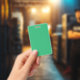 A vibrant green leaf with prominent veins and a de ID badge