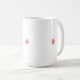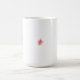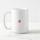 A vibrant red graphic design featuring bold, abstr coffee mug