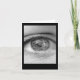 Black & white photographic image of an eye reflecting scenes from a city street.
