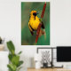 A Village Weaver calling while perched on a reed Poster