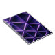 A violet ceiling with a criss-cross pattern; a blu notebook