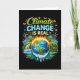 A blazing Earth surrounded by melting ice, wildlife, and renewable energy warns of the urgent reality of climate change.
