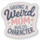 Celebrate your quirky mum with this fun and relatable sticker!  Featuring the phrase "Having a Weird Mum Builds Character" in a playful design, this sticker is a lighthearted tribute to all the moms who embrace their unique personalities and make life more interesting.  Made with durable vinyl, this sticker is perfect for laptops, water bottles, journals, and more.