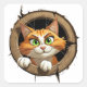 A Whimsical Cartoon Cat with Bright Green Eyes Pee Square Sticker