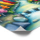This enchanting artwork depicts a fantastical mountain landscape bursting with an explosion of colours. A serene river, adorned with gentle waterfalls and smooth rocks along its banks, meanders through a valley flanked by majestic, snow-capped mountains in the distance. What makes this scene truly unique are the trees that line the river and dot the hillsides – their foliage is painted in an incredible spectrum of vibrant hues including bright yellow, fiery orange, deep red, fuchsia, turquoise, and various shades of green, creating a mesmerising "rainbow forest." The sky above is a soft gradient of yellow and blue, adding to the dreamlike quality of the piece. This artwork evokes a sense of wonder, joy, and tranquillity, making it a perfect addition for anyone who loves fantasy art, nature, and cheerful, colourful imagery.