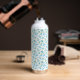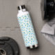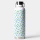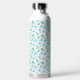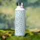 a white background with blue flowers and green lea water bottle