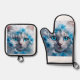 Oven mitt and pot holder , has a beautiful white cat with blue eyes, unique and practical.