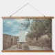 Hanging Tapestry in natural earthy tones. Ancient fort walls, a small lighthouse and a Mediterranean coastal landscape with an olive tree for travel lovers and adventures seekers. Coastal, nautical, Provencal style.