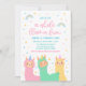 A whole llama fun birthday party invitations with a playful llama, rainbows, and stars theme.