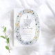 This modern safari animals baby shower design features a hand-drawn oval frame of cute mum and baby elephants, giraffes, turtles, lions, cheetahs, and birds, with monstera, palm, wild grass, and leaves. In the centre, it reads: "A wild one is on the way!" in a combo of hand-written open-face capitals and script lettering. The event details are below in simple typography. Cards reverse to a mustard yellow background with a simple white polka dot pattern. Click on "Personalise" to change the wording. View the collection link on this page for more designs. Feel free to contact me if you have any questions!