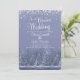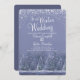 Winter wedding blue and white pine trees by the lake with snow gouache and watercolor art invitations. Personalise with your own wedding details. Ideal for a Christmas or lakeside winter wedding. Title reads, It is a Winter Wedding. © Gouache and watercolor painting and design by Sarah Trett www.sarahtrett.com for www.mylittleedenweddings.com