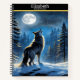 A wolf sings to the moon on a starry winter night notebook